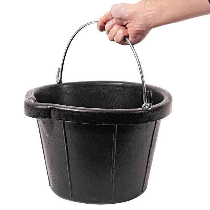 The dimensions of the 10 Quart Round Rubber Bucket are 12.5″ x 12.75″ x 8.7″ (L x W x H). It weighs 4 lbs. - What are the features of the Tuff Stuff Rubber Pail?