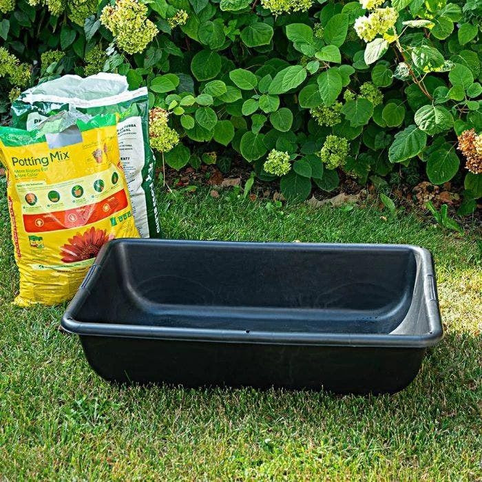 The Large Mortar Tub 36x24x8 26GAL is a heavy-duty, all-purpose mixing tub designed for your everyday tough jobs. Made of heat and cold-resistant, chemically neutral, and UV-resistant material, this tub can withstand years of outdoor exposure without rusting or discoloring. Its smooth edges ensure safety during everyday usage. With a 26-gallon capacity, this tub is perfect for a range of uses including aquaponics, hydroponics, concrete mixing, gardening, pet care, and general storage. Made from 100% recycled LDPE, it comes with a 1-year warranty.