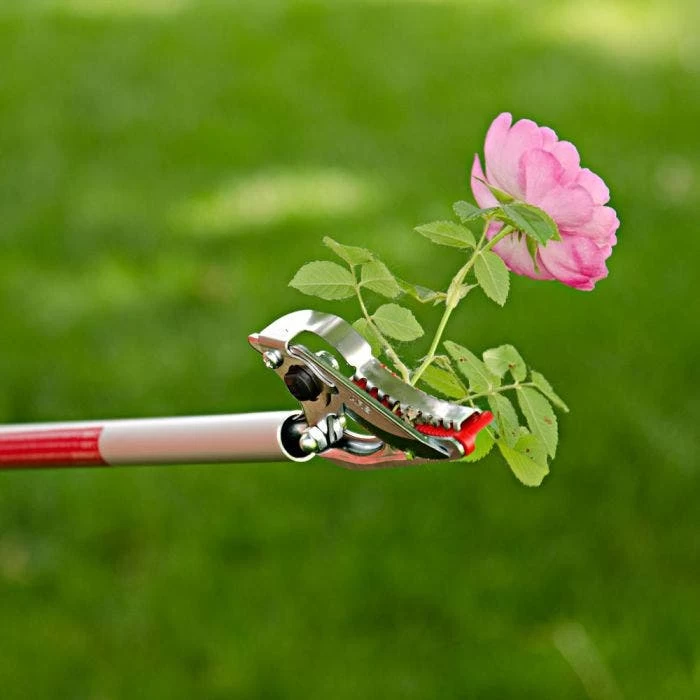 Cut-and-hold branch grip helps trim the pricking sprigs of roses safely and efficiently.
