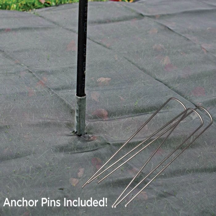Simply secure our (6311) UV treated 10′ x 10′ shade tarp down with our (2420) 24-pack anchor pins to create a 100 square foot barrier under your feeders. The shade fabric has reinforced edges and brass grommets every 2 feet giving you the just the right spacing to anchor the fabric securely. In the spring unpin, pull the fabric up clean off the debris and put away for next season.