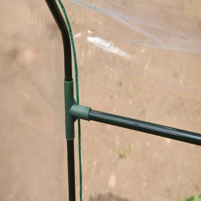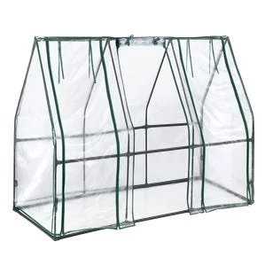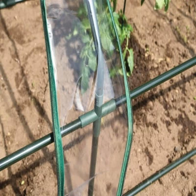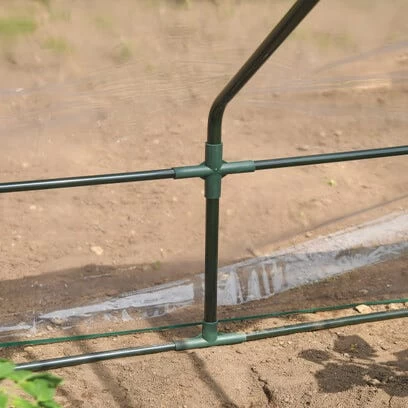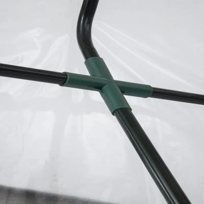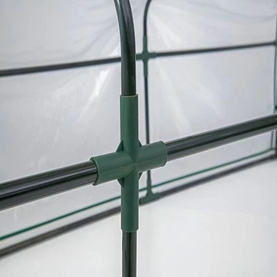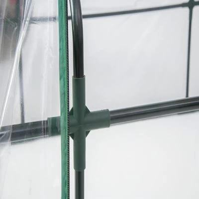 - The greenhouse has a fitted clear PVC cover with integrated tie-downs.nn