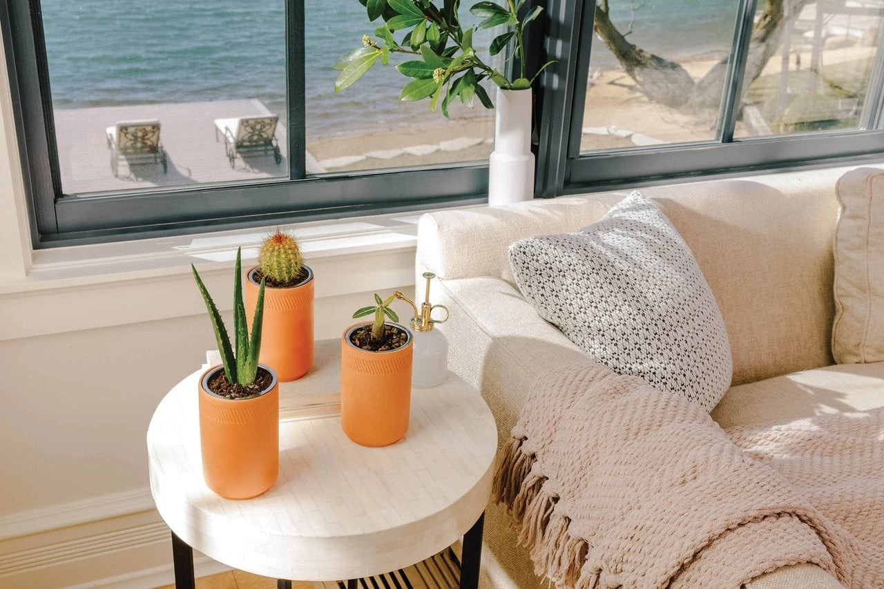 The cutting edge of houseplant cultivation. This terracotta kit from MODERN SPROUT has a glazed interior and is outfitted with a passive hydroponic system known as “wicking,” which brings water and nutrients up to the plant’s roots. So whether you forget to water, overwater, or both, this planter’s got you covered. Comes equipped with everything you’ll need to start growing, just add water and set in a sunny window.