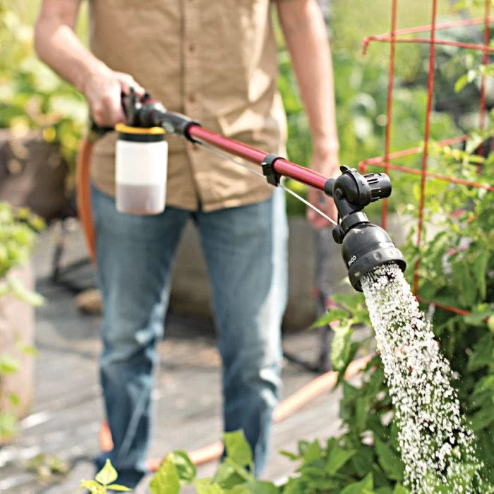 With our Hyde® PivotPro„ Water Wand you simply add liquid fertilizer to the 16 oz reservoir, set the liquid-to-water ratio, and you are ready to apply! Choose from three spray settings: shower, soak or jet to fit your application.
