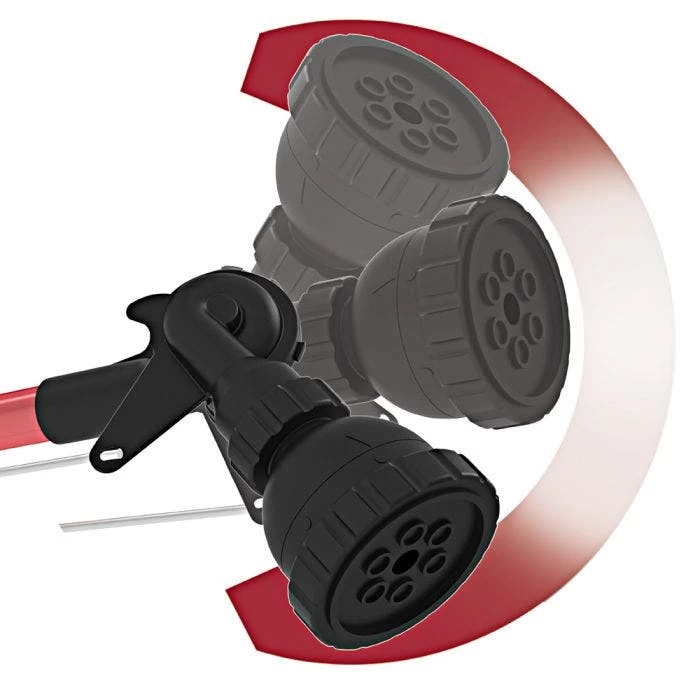 The free-spinning hose connection allows the hose to move freely, preventing kinking, while the heavy-duty comfort grip helps prevent hand fatigue. Accepts any standard garden hose accessories.