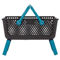 A modern twist on the tradition harvesting hods and baskets The smooth, perforated interior won’t bruise produced while gathering and rinsing your vegetables. Fold out legs keeps your harvest off the ground and allow it to drip dry thoroughly before bringing it in the kitchen. These hods also have a unique feature by allowing you to stack mod hods of the same size, for a fast, space-saving storage in your kitchen, pantry, mudroom or anywhere. When the legs are folded out notches on the top of the baskets allow for a secure connection. Bring to the farmer’s market or carry supplies to the garden with these Mod Hods. Long lasting, easy to care for, simply rinse after each use and it’s ready to go! Available in 3 sizes: 4 liter, 15 liter and 20 liter baskets.