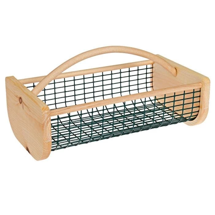 Harvest and wash plants, fruits and vegetables (especially carrots and potatoes!), or discover one of the hundreds of other uses that the hod lends itself to inside and out any time of the year. Constructed with 3/4-inch thick pine sides and birch side rods, it also has a sturdy, food grade PVC-coated wire body, and a steam bent handle for a handsome look. 16in L x 9in W x 7in H. Can hold 8 quarts or 1 peck. Ship wt 3 lb.