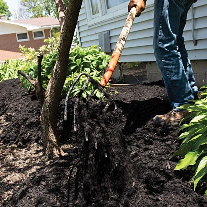 The fork has a one piece forged steel head, distinct scoop design, oval shaped steel tines, and a lightweight yet sturdy design. It also has sharp, oval shaped pointed tines that can penetrate deeply into materials and a scoop shape that allows you to move compost, mulch, straw, and more with ease. The long, straight handle allows you to reach hard to reach places. Lastly, it has a one piece welded head that holds its shape even after years of use and is covered with a lifetime warranty.