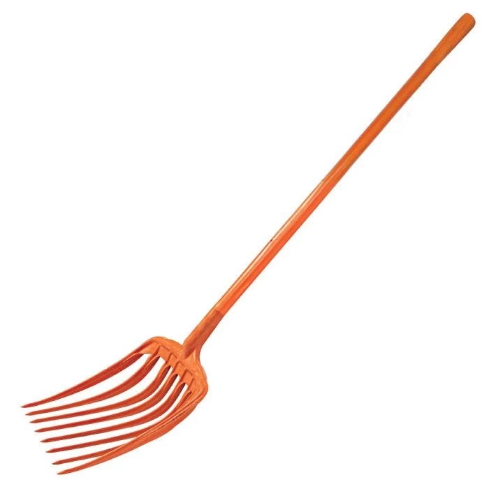The Leonard 8 Tine Poly Mulching Fork is made of high impact poly material, has one piece construction, tapered tines, reinforced fiberglass core handle, and comes in a bright orange color. It is also made in the USA and is great for all weather performance for a variety of tasks.