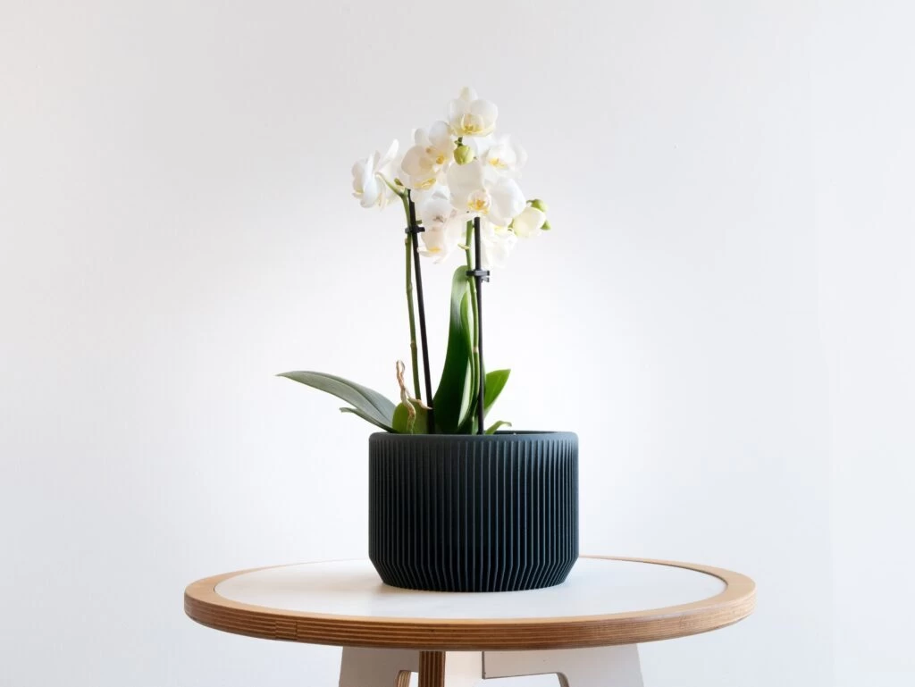 This plant pot is made of an organic and eco friendly material : a blend of recycled wood and bioplastic made from corn. Its composition makes the planter a sustainable piece !