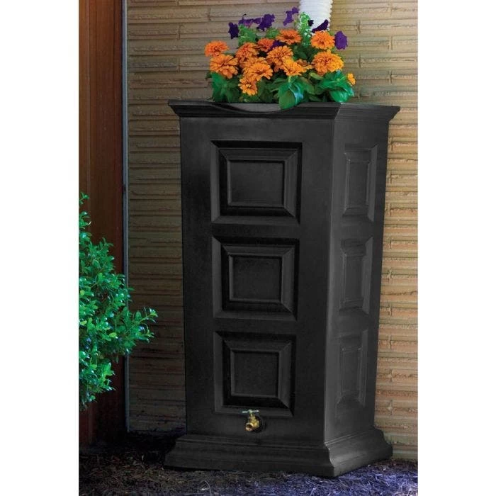 The Savannah Rain Saver is a 55 gallon stylized rain saver. Constructed with thick and durable polyethylene resin which holds up to the harshest elements, the exterior has the appearance of a colonial planter.