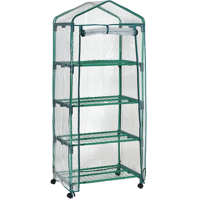 · Compact footprint: Whether you are using this mini greenhouse on a large farm to start seedlings, or keeping them on a back porch for your very own urban greenhouse, you don’t need much space when committing to a grow house like this one. This 4 tier mini greenhouse is small enough to fit on a parch while still providing plenty of space for your crops.