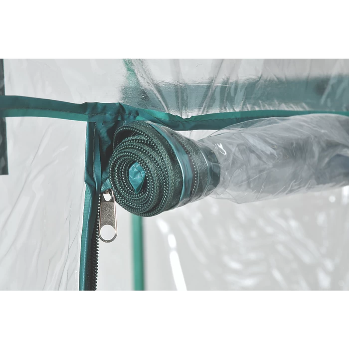 - Double zipper door panel rolls up allowing easy access to plants and seeds