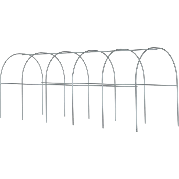 - Secure Anchoring: All High Tunnel Greenhouse frames come equipped with 30 inch base pipes. Once anchored securely, these pipe anchors will prevent the greenhouse frame from racking or wobbling at connection points.