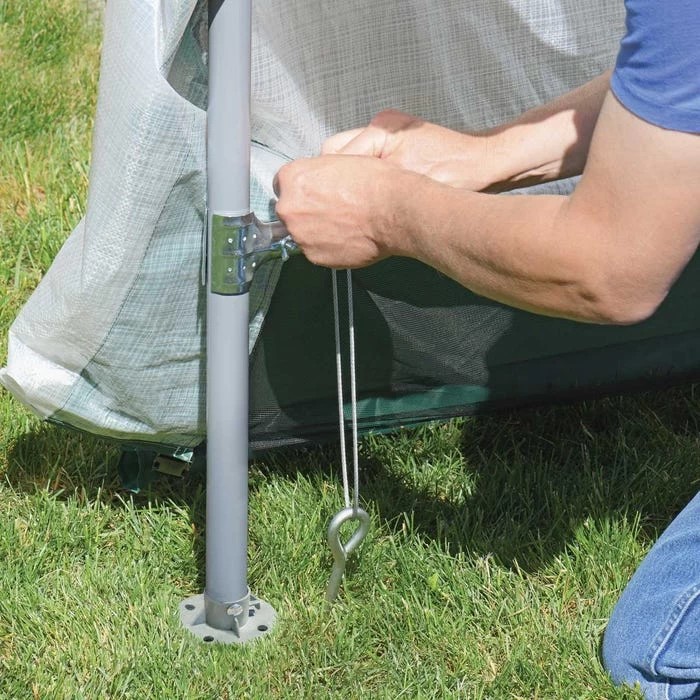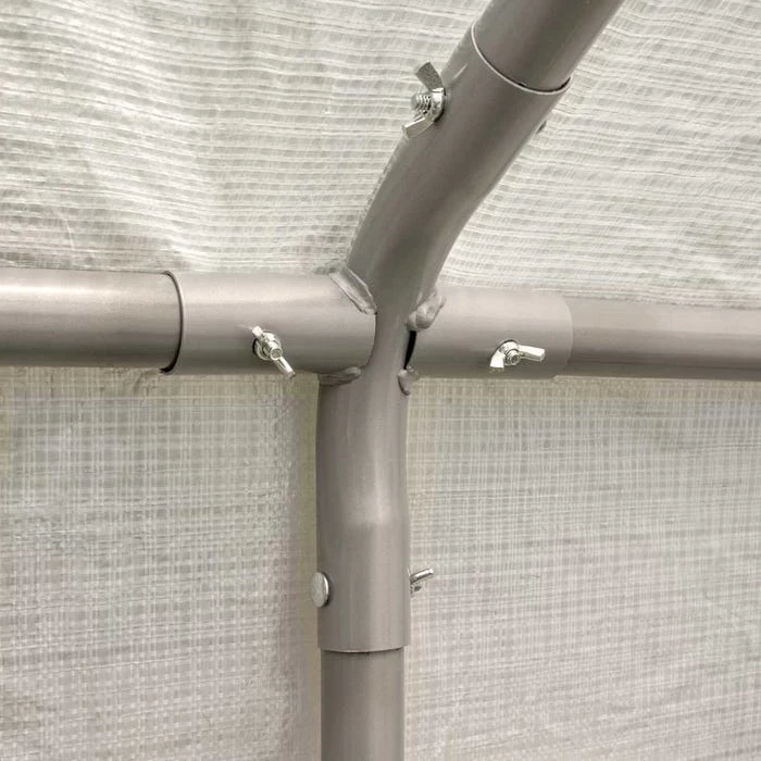 | Included Items | (1) 6' x 8' x 6'6" / 1,8 x 2,4 x 2 m 3-Rib All Steel Frame, (1) Luminate™ 1-Piece Fitted Polyethylene Cover with Double-Zippered Door and Semi-Circular Screens, (4) 15" / 38,1 cm Auger Anchors, Complete Hardware Kit, Easy Step-by-Step Instructions |