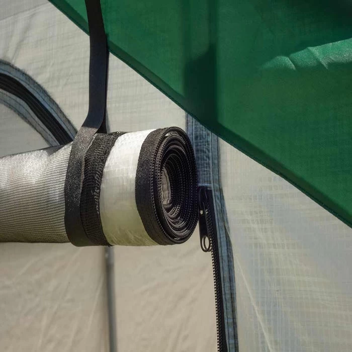 - Half-Moon-shaped zippered screens on both end panels for adjustable air circulation.