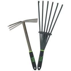 The Terra Tiller and Terra Whisk Rake Combo Pack is a must-have for any serious or beginning gardener. The Terra Tiller’s dual action head – 3 pronged cultivator and beveled edge – lets you tackle any gardening task with ease. The durable yet lightweight design, ideal 15-inch length, and comfort grip provide optimal strength and leverage. The Terra Handheld Garden Rake’s 6 free-floating tines and cushioned handle grips make raking a breeze, allowing you to reach even the farthest corners of your garden beds without worrying about damaging your plants. With a lifetime guarantee, these tools will revolutionize the way you garden.