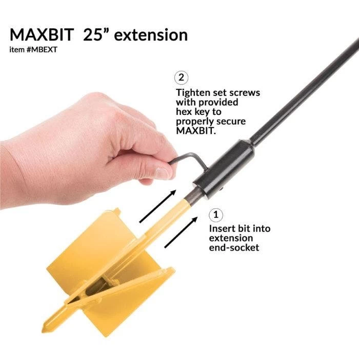 The MAXBIT Garden Hole Digging Drill Bit Kit includes both Garden Hole Digging Drill Bits and a 25 inch extension. Both the MAXBIT drill bits and the extension feature a powder coated steel construction. This kit provides all of the hardware you need to get started.