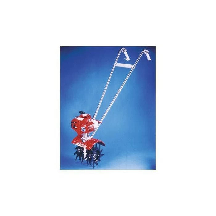 Mantis Tiller 21.2cc 2 Cycle Engine features a contoured handle design and premium Sure Grip handles for maximum control and comfort. It has a flush mounted throttle, palm controlled safety switch, and infinite speed control for superior ease of operation. The tiller is powered by a commercial-grade engine atop a durable power train featuring a precision steel cut gear system within heavy-duty cast housing that provides exceptional power necessary to turn specially designed spring steel serpentine tines at up to 240 RPM.