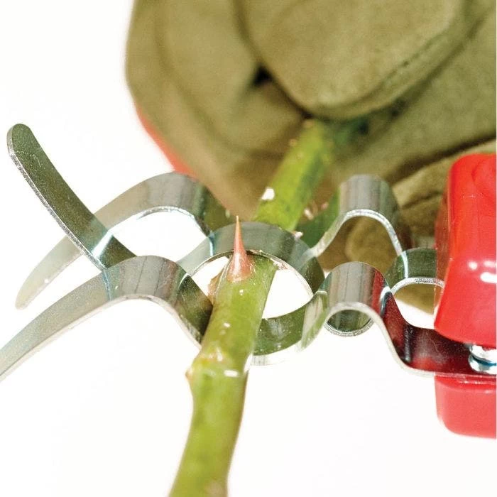 Thumb depressed cutter effortlessly removes thorns and leaves from roses, carnations, etc. Thumb lever with spring action adjusts to all sizes of stems. A must-have tool for rose gardeners!
