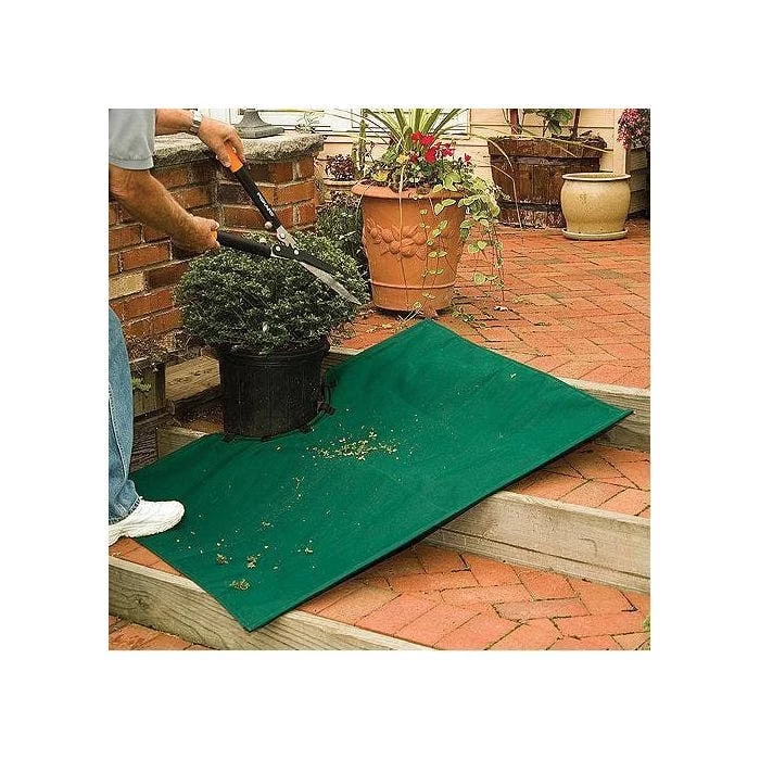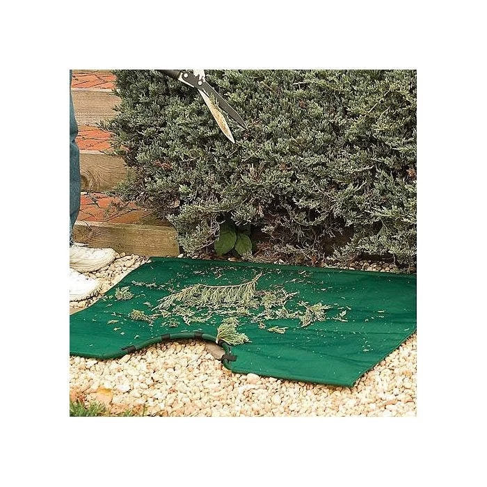 Measuring a sturdy 3 feet x 4 feet, the Trim Bib is a strong, water-resistant canvas bordered on two sides by stiff steel tubing. It spreads out evenly in a single motion and gathers just as quickly. Plus, with its curvy side, it can hug the trunk of any bush you prune! Once you’re done, just lift the bib and funnel clippings right into a lawn bag or compost bin – so easy!