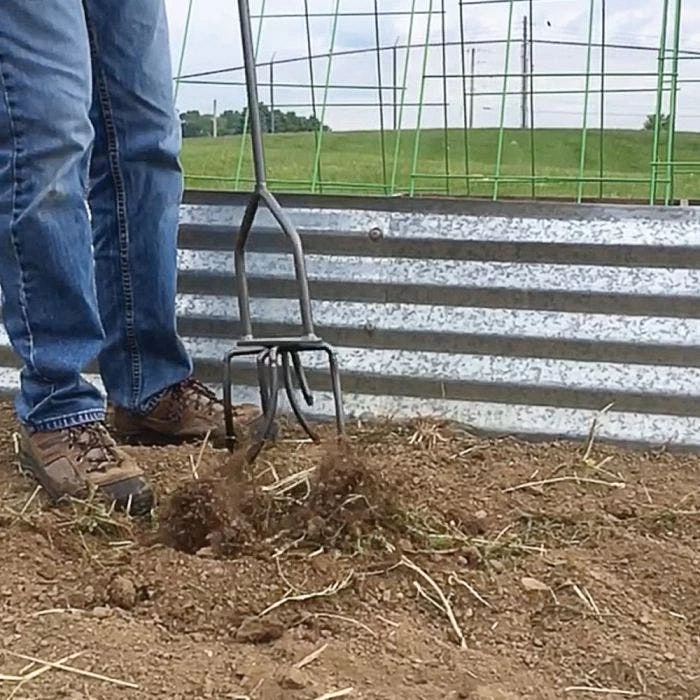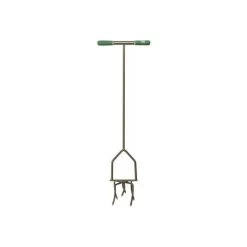 The Twist Tiller was designed to make the most of your effort. A step-on plate allows you to use your body weight to force the claws into the ground while the extra-long “T” handle gives you the leverage to twist the claws to break up dense soil. The Twist Tiller can also be used for mixing compost and digging holes. Long, extra durable all steel construction. 38in overall length.